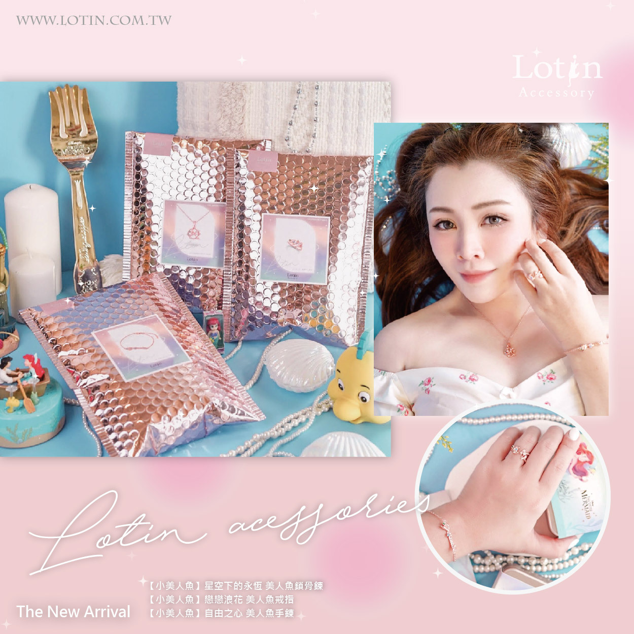 Lotin和7-ELEVEN合作的限定玫瑰金色美人魚飾品大受好評